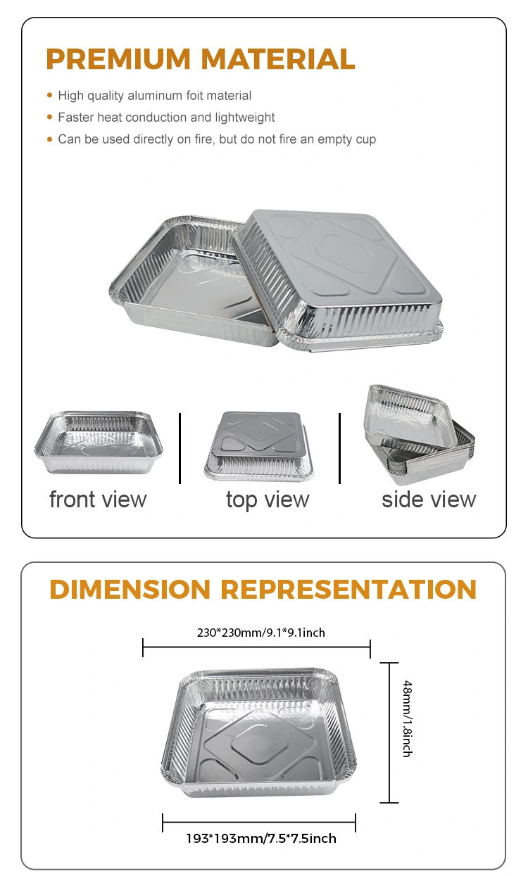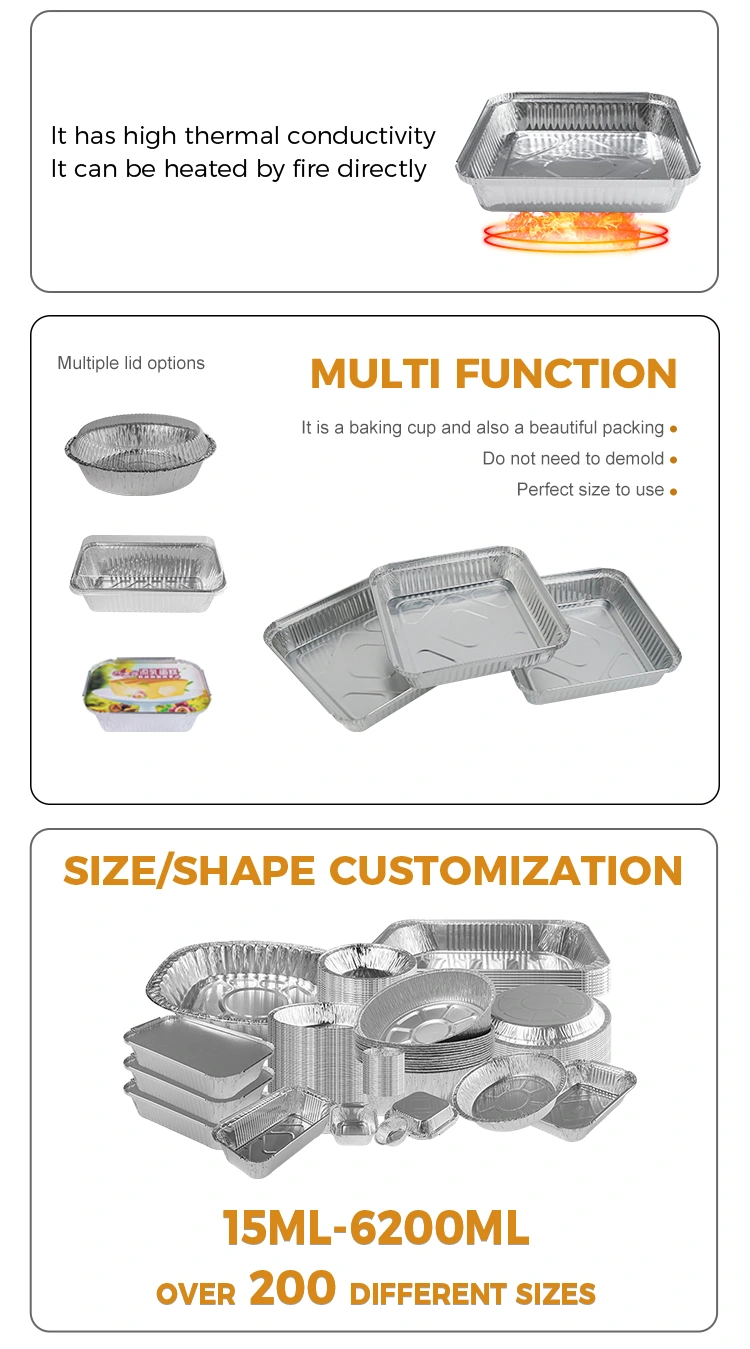 Pembekal foil aluminium Yunchu menghasilkan bbq pakai bbq tusuk perak aluminium foil kontena, yang sesuai untuk perintah takeaway katering, kek kecil di kedai roti, makanan ringan keluarga, dan restoran. Selamat dan sihat, idea makanan tidak terhad, perkakas dapur adalah pasangan yang baik untuk memasak makanan, pengayur udara dan peralatan lain yang tahan panas dan tahan minyak, mudah dibakar, barbeku luaran, mangkuk sementara tidak takut api, apabila menggunakan, makanan atau sup perlu diletakkan, Dan reka bentuk tepi adalah bijaksana untuk mengelakkan menggaru tangan anda. Saiz pelbagai tersedia untuk anda pilih untuk memenuhi senario penggunaan yang berbeza. Sekiranya anda mempunyai sebarang pertanyaan atau memerlukan maklumat lanjut, sila hubungi kami.