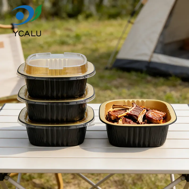 Bekas kerajang aluminium berdinding terang emas hitam Pembekal Yunchu Aluminium Foil mempunyai reka bentuk bentuk segi empat sama, penggunaan ruang penuh, bucu bulat dan licin, tiada burr tajam dan lebih selamat untuk digunakan; reka bentuk dua telinga yang bernas, ergonomik, terlindung dan anti-panas, mudah diambil, walaupun ia mengandungi hidangan panas dan sup, ia boleh dipegang dengan mudah untuk mengelakkan tangan melecur dan menyelesaikan titik sakit yang menyusahkan kotak kerajang aluminium tradisional. Diperbuat daripada kerajang aluminium yang menebal, ia mempunyai tekstur yang padat dan keras, kapasiti sokongan yang kuat, dan tidak mudah cacat atau rosak. Ia boleh menampung makanan dengan sup dan lemak tanpa kebocoran atau masalah kebocoran sampingan, dan ketahanannya jauh lebih baik daripada kotak makan tengah hari pakai buang biasa.