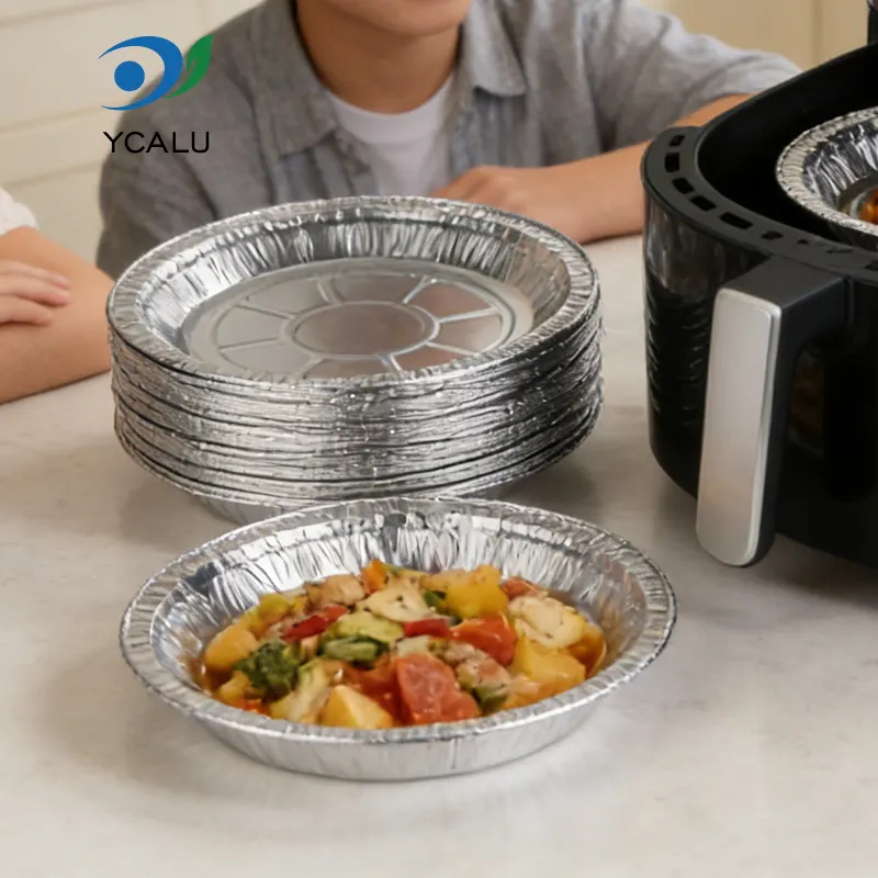 Teg Panas: Penggoreng udara cakera pakai buang Bekas Makanan Kerajang Aluminium Perak