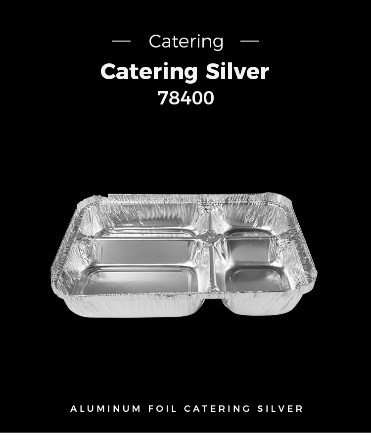 Kilang Bekalan Foil Yunchu Aluminium melancarkan bekas pembekuan makanan cepat sisik yang boleh dibuang baru, nombor 78400. (1.6 in). Dengan kapasiti kira -kira 1020 ml (36.0 oz), ia adalah mudah dan praktikal untuk memegang pelbagai makanan dalam empat petak.