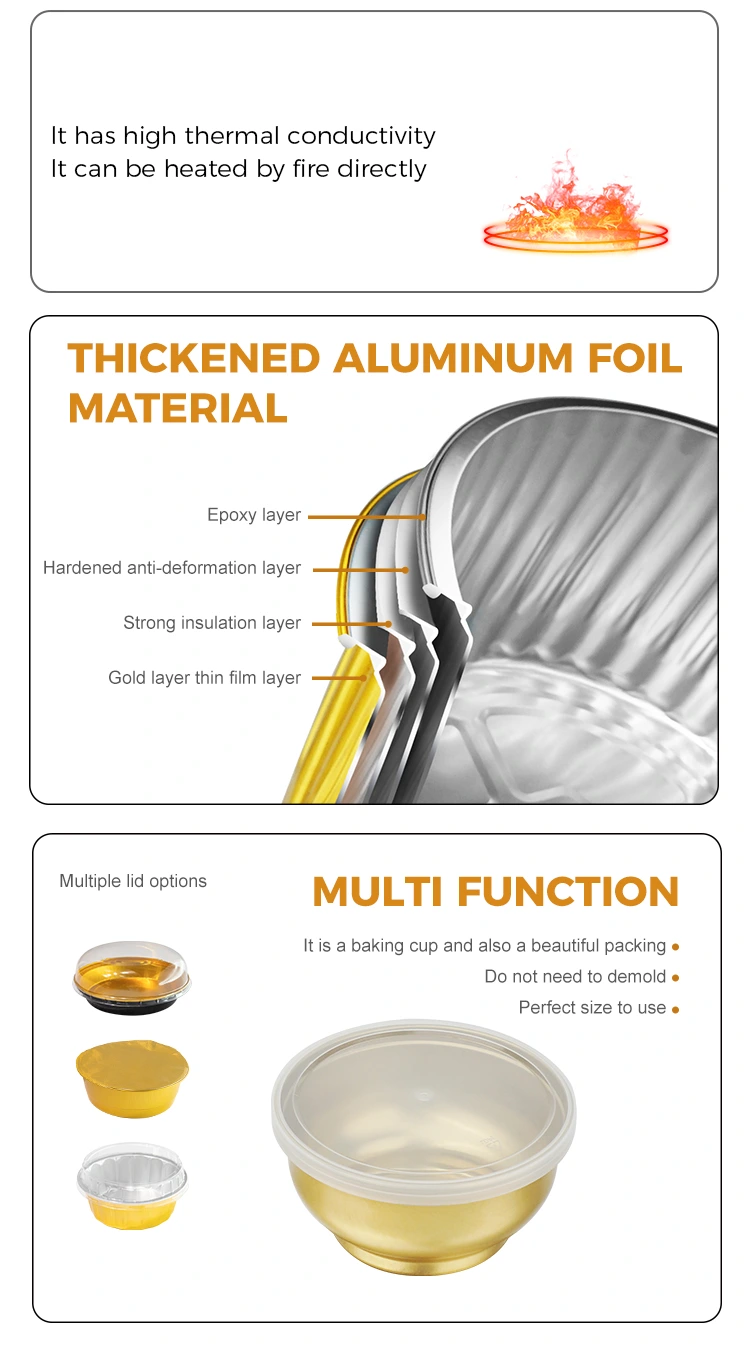 Kilang pembuatan kerajang aluminium yunchu, bumbung bumbung emas kecil yang boleh dibuang aluminium aluminium, mangkuk mangkuk yang unik, lebih mudah daripada makan, dan makanan yang lebih mudah. Mangkuk yang dibungkus secara individu tidak terdedah kepada kerosakan kulit, mudah dibawa, diperbuat daripada bahan -bahan yang kukuh dan tahan lama yang dipilih, dibungkus secara individu, vakum disterilkan, mudah dibuka dan dimakan, mampu mengunci kesegaran semasa memasak pada 121 ° C. Mangkuk asal tidak boleh dipanaskan di dalam gelombang mikro. Terdapat dalam pelbagai spesifikasi, disusun untuk penyimpanan, mangkuk aluminium boleh disusun untuk memastikan dapur kemas dan teratur. Saiz yang berbeza memenuhi pelbagai keperluan pembungkusan - satu mangkuk pada satu masa adalah betul.