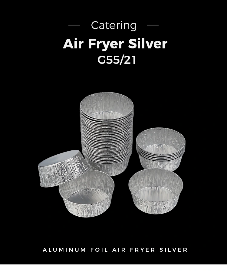 • Penggoreng udara celup bulat perak pakai buang Bekas Makanan Kerajang Aluminium PerakPenggoreng udara celup bulat perak pakai buang Bekas Makanan Kerajang Aluminium Perak
