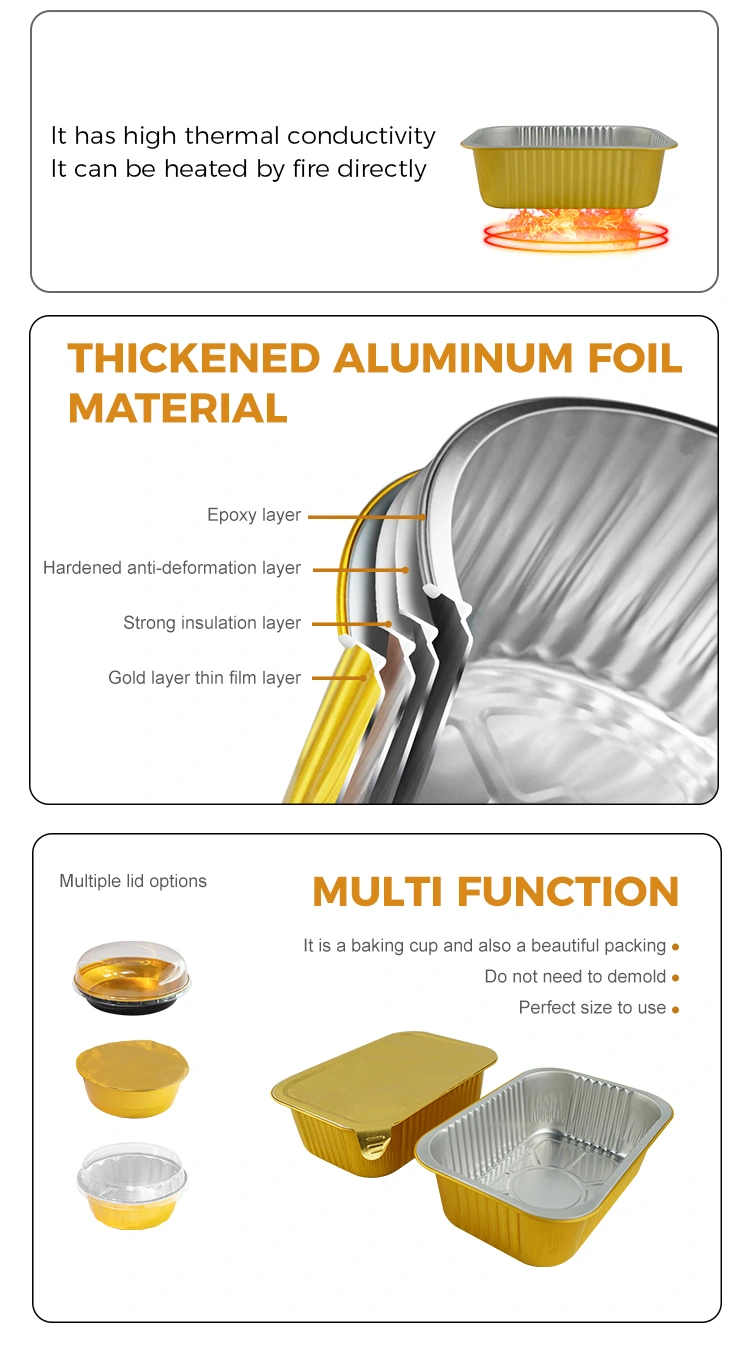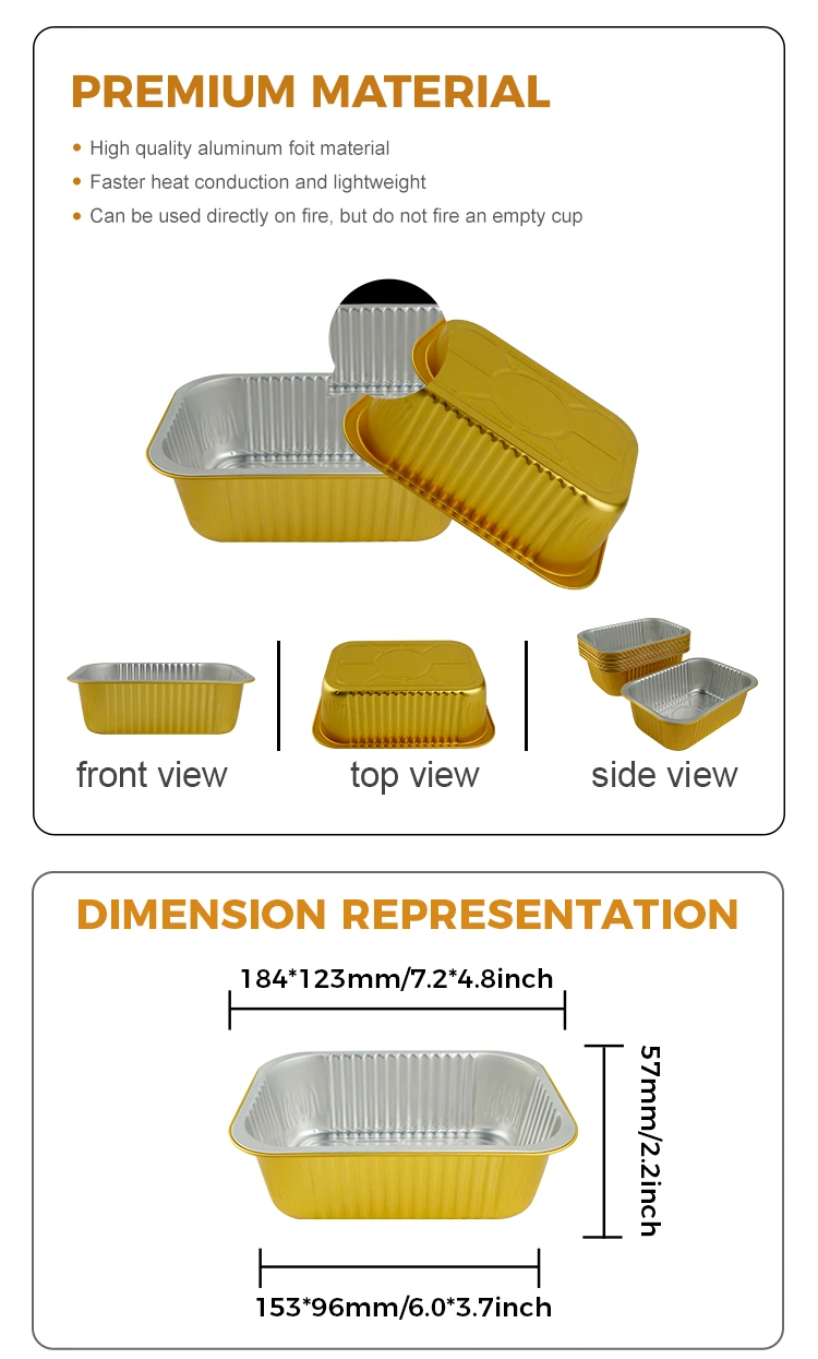 Foil Yunchu Aluminium Foil Square Seal Square Gratin Aluminium Foil Containers, Sesuai untuk Single Serving of Baked Rice atau Pasta Bakar dan Pembungkusan Hidangan Lain, Pembungkusan Kotak Makan Tengahari dan Pembuatan Hidangan Pra piawaian. Dengan filem pengedap haba, ia dapat mencapai pengedap yang cekap dan berkesan menghalang kebocoran sup, yang sesuai untuk peralatan pengedap automatik. Permukaan bekas licin dan rata, yang mudah dilabelkan, dan ia cantik dan murah hati, yang membantu meningkatkan imej jenama. Ia tahan terhadap suhu tinggi dan rendah, boleh digunakan dalam julat suhu -20 ° C hingga 250 ° C, dan menyokong pelbagai kaedah pemanasan seperti penyejukan, baking, dan mengukus. Bahan foil aluminium adalah 100% boleh dikitar semula dan mampan.