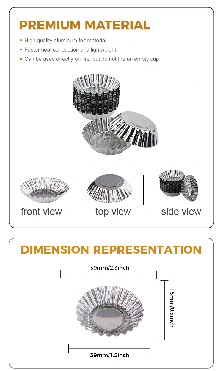 Badan cawan cawan cawan cawan aluminium yang tidak slip direka dengan tekstur anti-slip, meningkatkan geseran, mengelakkan tergelincir, reka bentuk mulut cawan bergulung, mudah diambil, tidak akan menyakiti tangan, pelbagai reka bentuk kapasiti yang besar pada satu masa yang dibentuk, tidak perlu membersihkan masa dan tenaga, digunakan secara meluas untuk telur bakar, Pensijilan SGS dan Pensijilan Sistem Pengurusan Kualiti ISO9001, memastikan keselamatan dan keramahan alam sekitar produk.