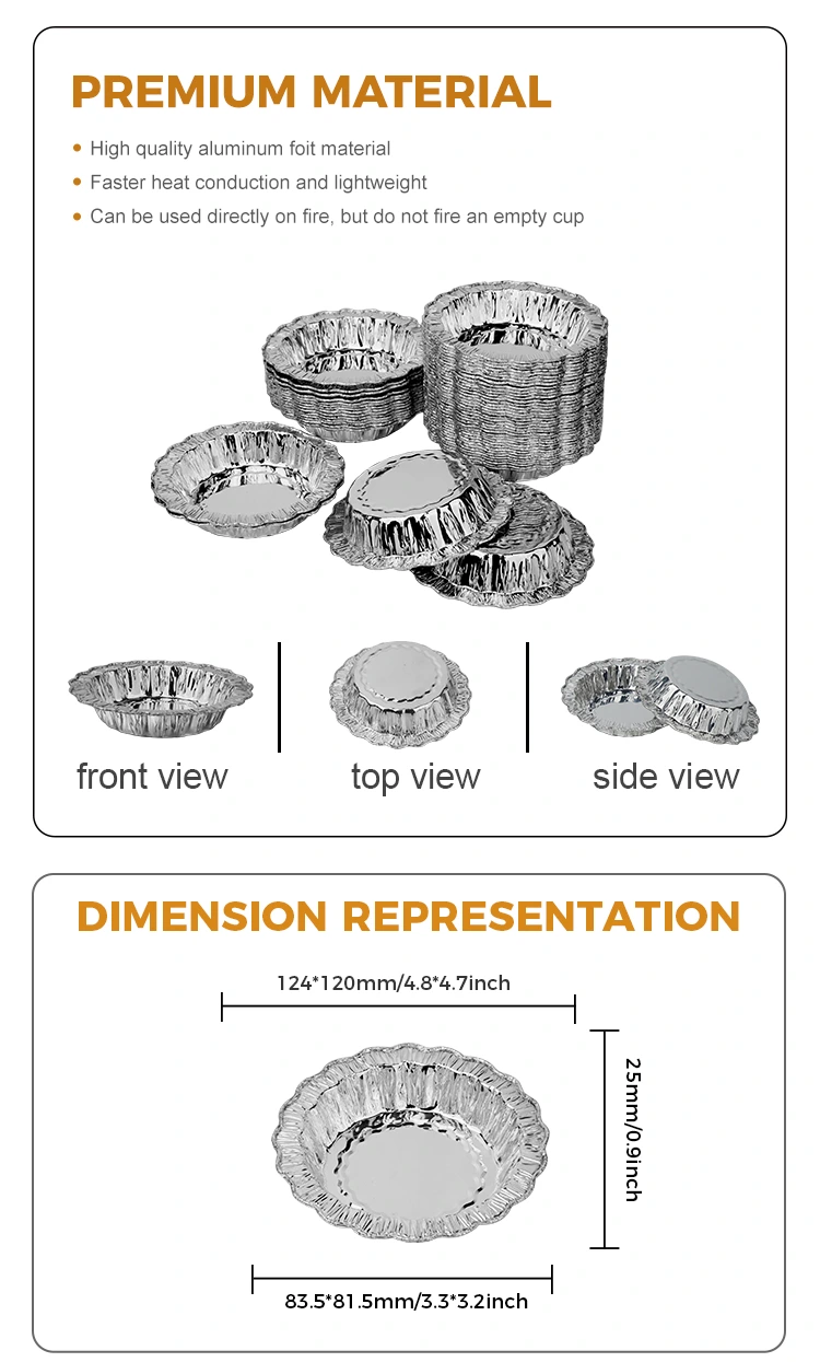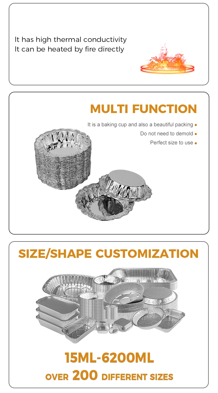 Yunchu aluminium foil pembekal renda bulat baking cake perak aluminium foil kontena, sangat mudah untuk baking cakes, tart telur, dan goreng udara, dengan banyak fungsi, tebal dan tahan lama untuk baking. Apabila memilih acuan baking, apa yang paling anda hargai? Adakah bahan itu boleh dipercayai? Adakah mudah untuk demold? Adakah ia mesra pengguna? Renda bulat ini membakar kek perak aluminium foil Container memenuhi keperluan anda untuk membakar acuan! Satu keping dibentuk, menebal dan tahan lama untuk baking, diperbuat daripada 8011 bahan foil aluminium sentuhan makanan, selamat untuk sentuhan makanan, tidak mudah cacat atau bocor, konduksi haba seragam, tidak mudah dibakar atau overcooked, enak dan selamat untuk membuat, minyak dan noda tahan,