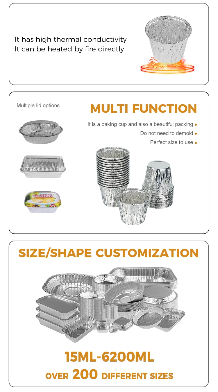 Pembekal kerajang aluminium Yunchu kek pembakar pakai buang bekas kerajang aluminium gred makanan bahan aluminium foil, bahan yang menebal adalah kalis bocor dan mampat untuk memastikan kestabilan pengeluaran besar-besaran. Pengaliran haba adalah sekata dan cepat, memendekkan masa membakar dan meningkatkan kecekapan penghantaran makanan. Reka bentuk penaik dan pembungkusan bersepadu mengurangkan proses demoulding dan pemuatan plat dan mengurangkan kos buruh dan kos pengeluaran yang kecil dan mudah didapati. cacat semasa pengangkutan bawa pulang, membantu meningkatkan reputasi jenama.