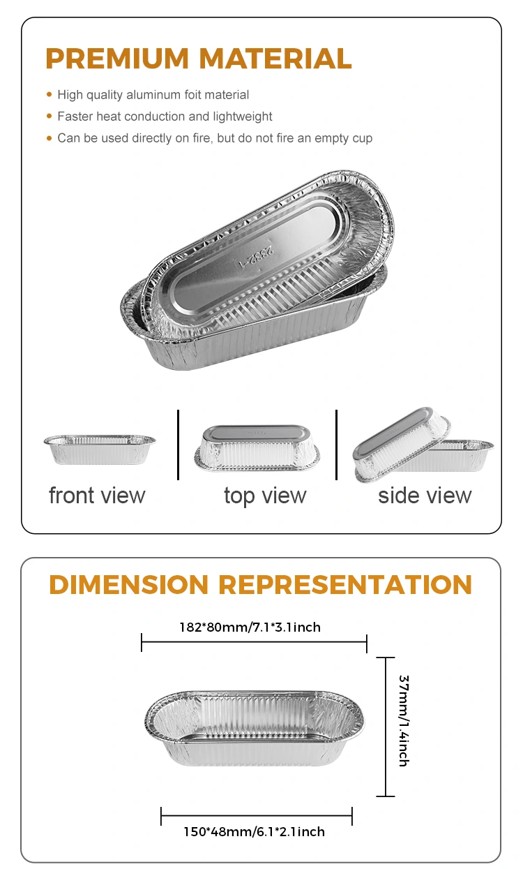 Pembekal foil aluminium Yunchu bujur udara penggoreng baking perak aluminium foil kontena adalah sejenis bekas yang boleh digunakan untuk mengukus, mendidih, membakar, membakar dan tujuan lain, dan boleh digunakan untuk sos, mencelupkan sos, condimen kecil dan sampel sampel baking. 8011-0 Jenis bahan kerajang aluminium, rintangan tegangan dan rintangan kakisan mempunyai pemanjangan yang baik, bahan foil aluminium yang menebal, tahan lama dan tidak mudah untuk memecahkan kehendak, hemming, reka bentuk separuh bulatan depan dan belakang tidak menyakiti tangan, acuan bersepadu, permukaan dinding adalah licin seperti cermin, saiz yang kaya untuk digunakan dalam variasi.