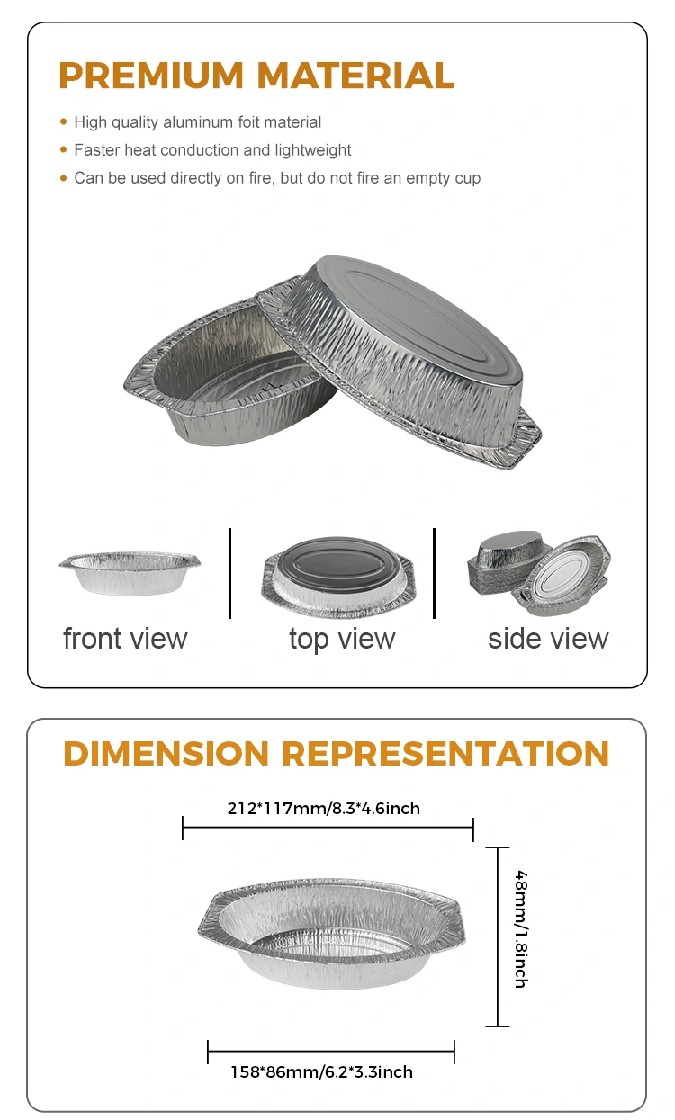Pembekal foil aluminium Yunchu menawarkan bujur roti bakar perak aluminium perak untuk memasak rumah, kedai roti, kedai rantai, dan penghantaran makanan yang disejukkan. Dibuat dari bahan foil aluminium gred makanan, bekas ini mempunyai bentuk bujur yang unik yang menjadikannya menonjol di antara banyak kotak penaik perak. Bekas ini amat sesuai untuk memegang sapu tangan, buah -buahan, roti dan semua jenis makanan retort, dan dapat memenuhi keperluan pelbagai jenis peralatan makan. Oleh kerana kekonduksian terma yang baik, ia sama -sama menghilangkan suhu tinggi, memastikan makanan dipanaskan secara merata. Di samping itu, ia mempunyai kapasiti beban dan rintangan tekanan tertentu, mengekalkan kestabilan walaupun dalam kes pelbagai susunan, mencegah ubah bentuk, dan sesuai untuk digunakan semasa pengangkutan. Untuk lebih baik menyesuaikan diri dengan senario dan keperluan yang berbeza, bekas ini juga boleh disesuaikan mengikut keperluan pelanggan dan menyediakan penutup yang sepadan untuk praktikal tambahan.