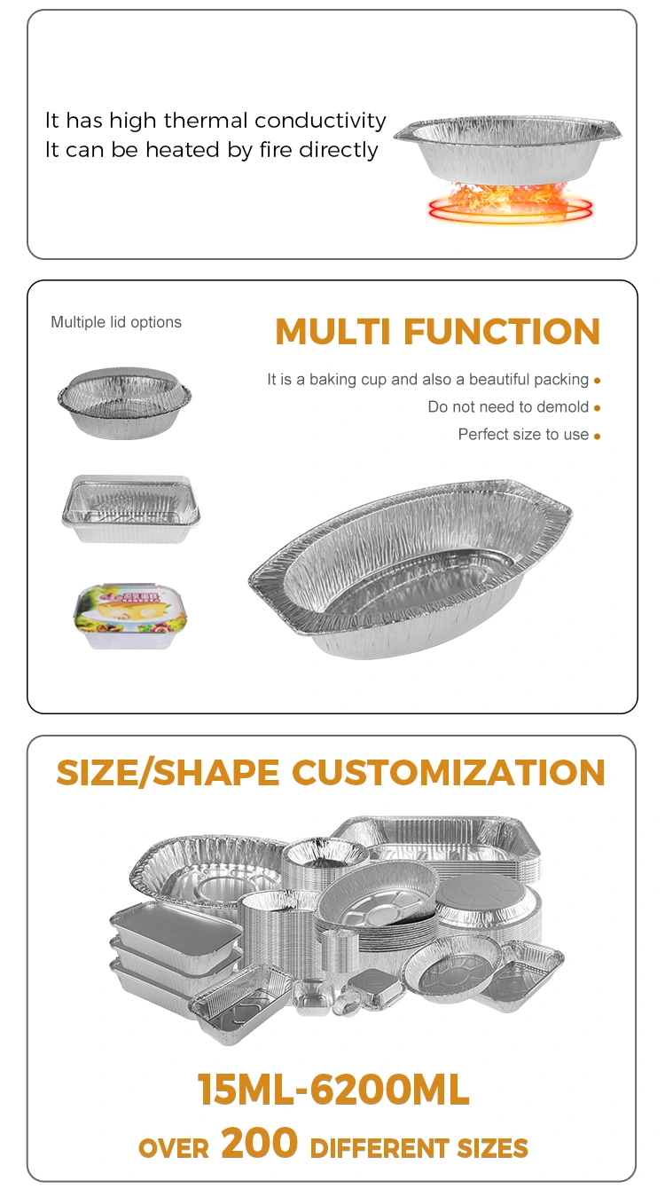 Bekas ini mempunyai kapasiti yang besar dan sesuai untuk menyimpan pelbagai makanan dan makanan ringan sehari -hari. Sebagai item sekali pakai, tidak perlu mencuci, yang sangat menjimatkan kos buruh. Produk ini dilengkapi dengan penutup haiwan peliharaan aluminium dan filem aluminium foil panas untuk memastikan tiada kebocoran minyak, tiada rembesan air, rintangan suhu tinggi dan tidak mudah untuk mengubah bentuk, meningkatkan kesegaran dan pemeliharaan haba makanan, dan membuat kesan pengangkutan lebih baik. Pada masa yang sama, produk itu mematuhi piawaian hubungan makanan ISO9001 dan SGS, menjadikannya selamat dan boleh dipercayai.