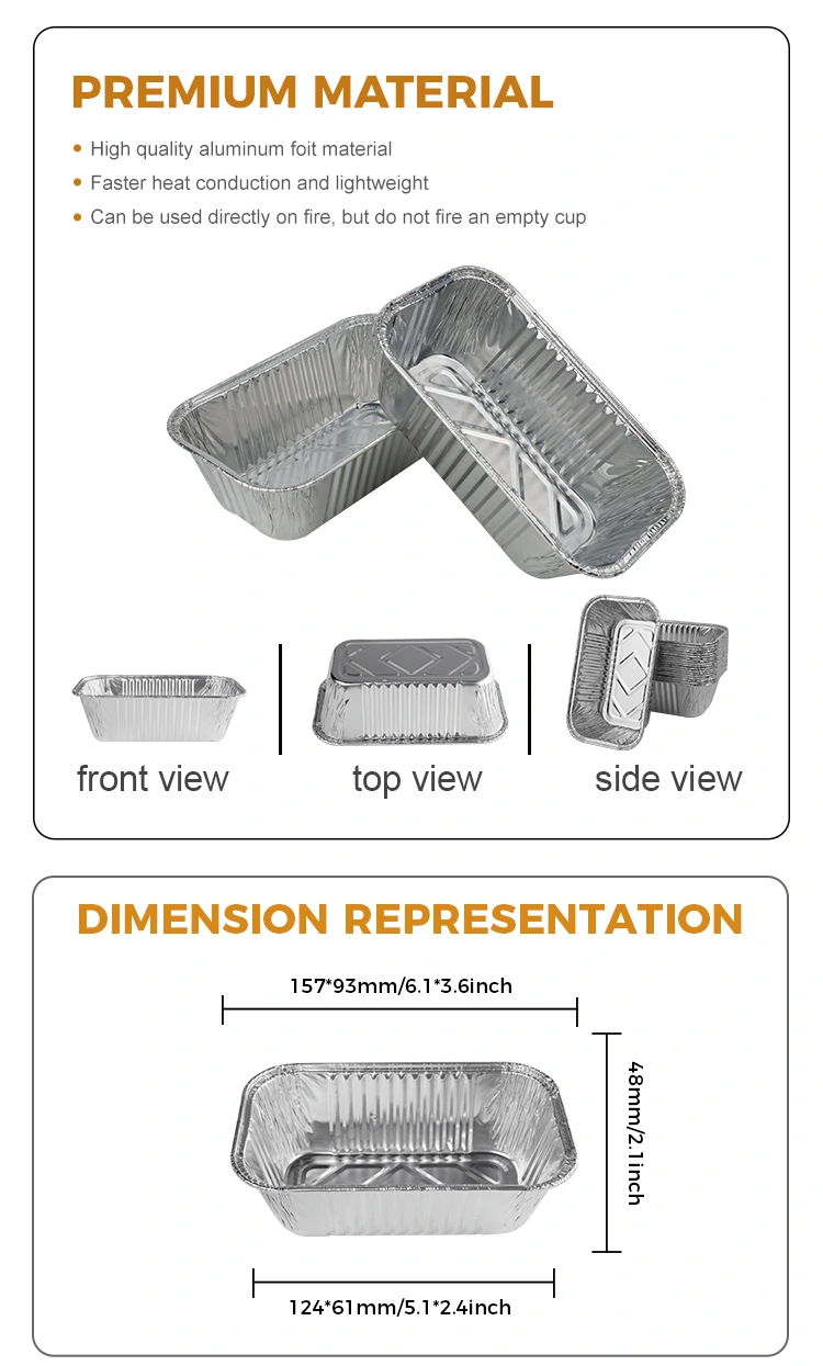 Yunchu aluminium pembekal aluminium pembekal segi empat tepat grill grill perak aluminium foil kontena sesuai untuk pelbagai kesempatan seperti penggoreng udara, baking, takeaway katering, parti, dan tempat layan diri. Ia boleh digunakan untuk membuat barangan makanan seperti roti persegi, kuki bakar, gril, dan penggoreng udara, dan boleh digunakan dengan pelbagai barangan makanan. Dengan kapasiti 450ml, bekas ini mampu memegang kebanyakan barangan makanan dan dilengkapi dengan tudung foil haiwan kesayangan yang telus untuk mencegah debu dan bahan cemar lain dari memasuki. Dinding luaran yang lancar menjadikannya mudah untuk disusun dan menyimpan, menjimatkan ruang. Ia selamat dan sihat untuk digunakan, dan ia sangat mesra alam, dan bahannya boleh dikitar semula, menjadikannya mudah untuk dibawa dan digunakan semula.