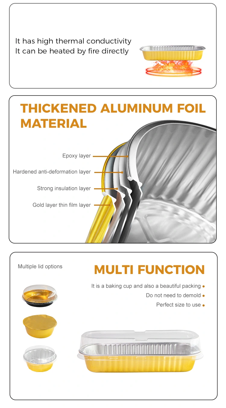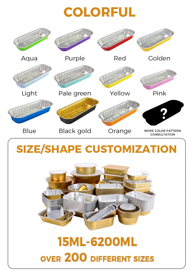 Yunchu Aluminium Foil Supplierrectangular Baking Cake Smoothwall Aluminium Foil Containers diperbuat daripada 8011 bahan foil aluminium gred, memilih untuk menyimpan di dalam peti sejuk dengan tudung, tudung foil aluminium dan peliharaan plastik telus sepenuhnya, tidak boleh digunakan di udara, dan mesra alam, reka bentuk cekung dan cembung di bahagian bawah bukan sahaja meningkatkan kestabilan produk, tetapi juga memainkan peranan dalam anti-slip; Para pengetuk di sisi meningkatkan kekukuhan produk, menjadikannya lebih tahan lama, dan di samping itu, kontena kerajang aluminium berdinding cahaya segi empat tepat ini menawarkan pelbagai warna untuk dipilih, membolehkan anda menyesuaikannya mengikut pilihan anda.