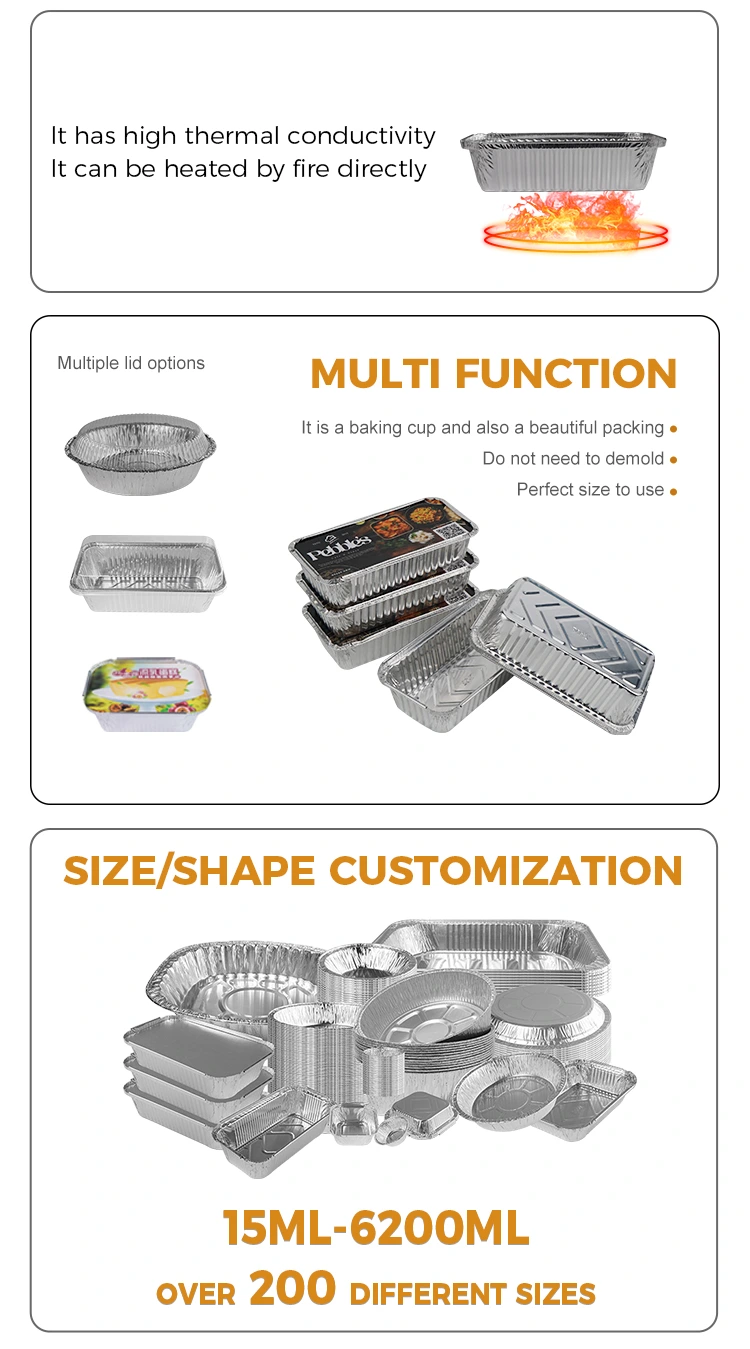 Pembekal foil aluminium yunchu, barbeku segi empat tepat menebal kontena kerajang aluminium perak, adalah penolong yang baik untuk barbeku, periuk panas, penaik, pembungkusan takeaway, pelbagai kemahiran memasak boleh dilakukan di dalam kotak, pelbagai saiz yang sesuai untuk pelbagai, dan lain -lain. Aplikasi, haba dan rintangan minyak, baking mudah, barbeku luaran, mangkuk sementara tidak takut api, apabila menggunakan, perlu meletakkan makanan atau sup, jangan kering tanpa air, ketuhar isi rumah bersih dan mudah untuk melupuskan hidangan.