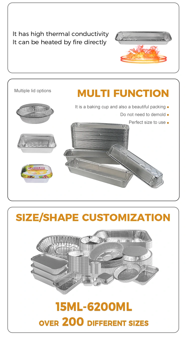 Pembekal Foil Yunchu Aluminium Pembekal Rectangular Bread Baking Silver Aluminium Foil Containers, pelbagai kaedah pemanasan, anda boleh menikmati kegembiraan baking pada bila-bila masa, penebat yang lebih berkesan dan kesegaran, reka bentuk yang ditingkatkan dan menebal, Pengaliran, penaik tidak mudah untuk membosankan bahagian bawah, makanan lebih baik ditumbuk, produk ini digunakan secara meluas dalam bidang barbeku dan penaik, terutama yang sesuai untuk perkhemahan, kedai roti, gerai barbeku, penghantaran takeaway dan restoran sushi dan majlis -majlis lain. Ia direka untuk memenuhi keperluan praktikal kebanyakan isi rumah dan kedai.