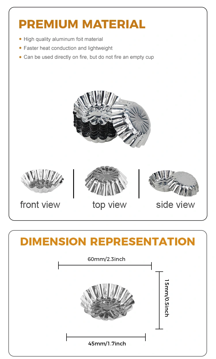 Pembekal foil aluminium yunchu bulat telur tart mainan baking perak aluminium foil container makanan. Dulang tart telur ini bukan sahaja kelihatan cantik, tetapi juga memberi perhatian khusus kepada kepraktisan dan keselamatan. Dulang tart telur ini mempunyai reka bentuk cawan bukan slip dengan tekstur bukan slip yang meningkatkan geseran dan berkesan menghalang makanan daripada tergelincir, menjadikan hasil penaik anda lebih stabil. Kedua, reka bentuk mulut cawan renda boleh dilipat dan disimpan, yang merupakan penjimatan ruang dan mudah alih, menjadikannya sesuai untuk keluarga atau pertubuhan katering kecil. Dulang tart telur diperbuat daripada kerajang aluminium gred makanan, yang terbentuk pada satu masa dan tidak perlu dibersihkan, yang meningkatkan kecekapan penggunaan. Ia sesuai untuk semua jenis masakan, sama ada bakar tart, kek, pastri kuning telur, kek mangkuk, ia boleh disajikan dengan sempurna. Dulang tart telur ini telah meluluskan pensijilan ERP Jerman, pensijilan EU SGS, dan pensijilan sistem pengurusan kualiti ISO9001, memastikan perlindungan keselamatan dan alam sekitar produk. Bahan mentah kami adalah bahan gred makanan yang sihat dan mesra alam, yang memenuhi piawaian keselamatan makanan antarabangsa, supaya anda boleh makan dengan keyakinan.