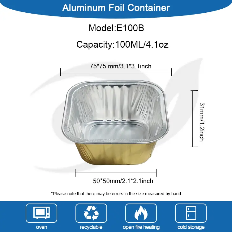 Yunchu Aluminium Foil Foil Foil Borong Kekit Baking Baking Smoothwall Aluminium Foil Containers E100B adalah kapasiti kecil pembungkusan foil pembungkusan foil yang direka untuk pengedap kecekapan tinggi dan pemeliharaan makanan, yang direka khas untuk biskut kecil, sos, bumbu makanan, Cermin, dan reka bentuk struktur stiffener, cantik dan praktikal, dapat meningkatkan secara keseluruhannya bukan slip dan tekstur pakej, terutamanya yang sesuai untuk penyaduran halus dan makanan haiwan kesayangan dan senario aplikasi lain.